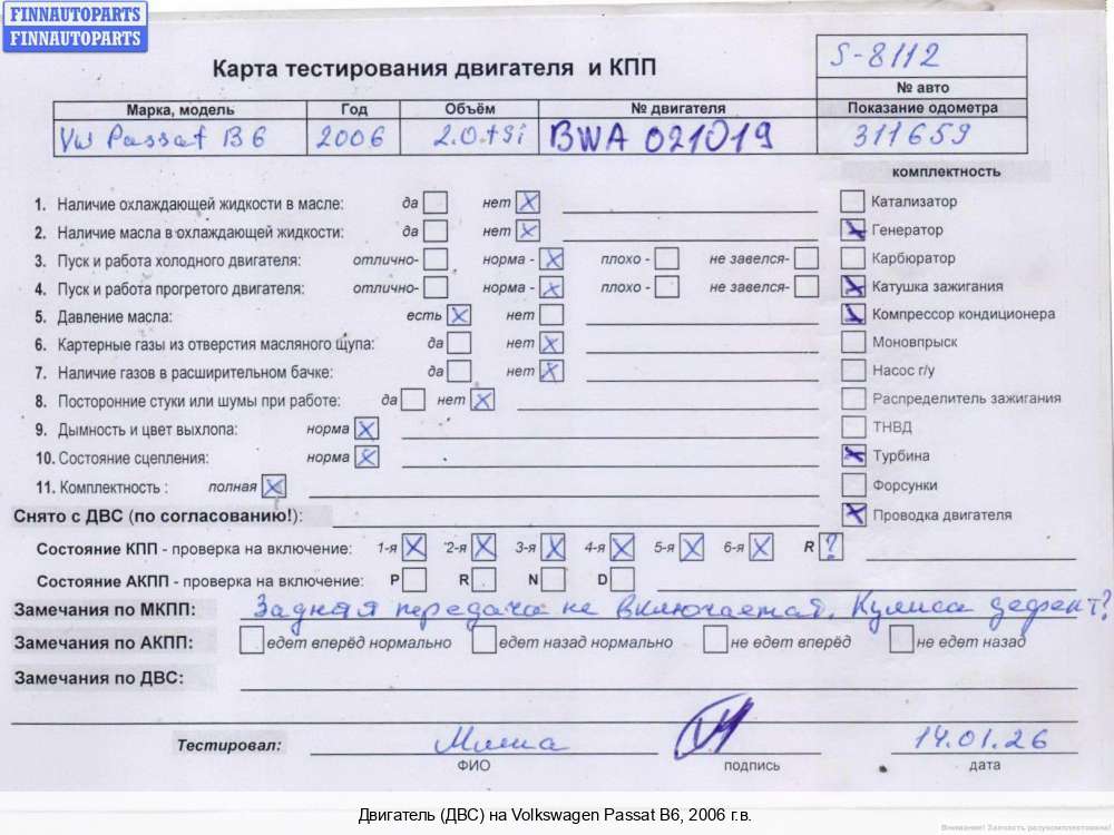 | Екатеринбург | 2006 | Двигатель на пассат б6 2.0т BPY | |||